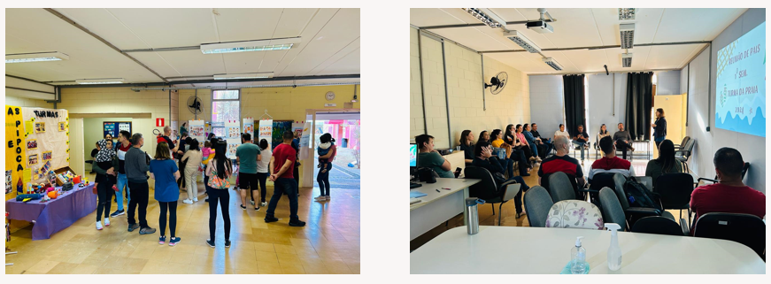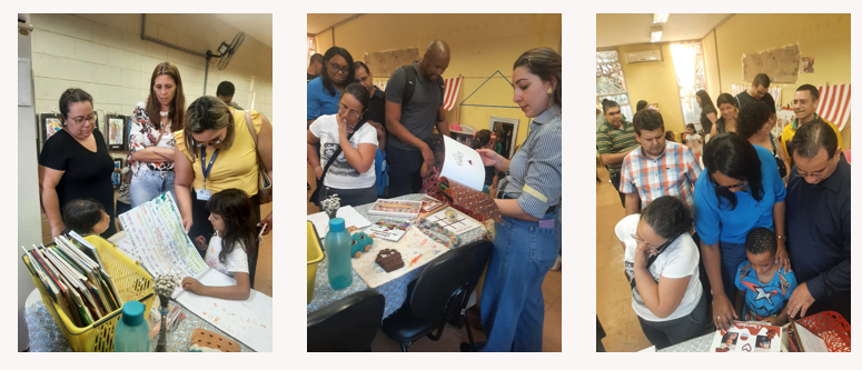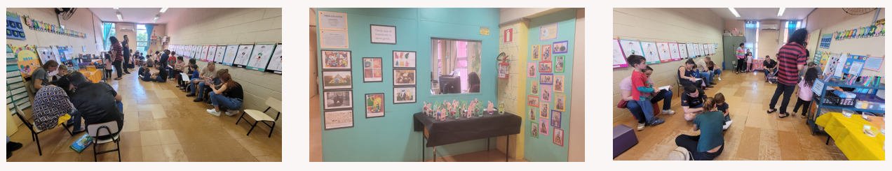 Nos dias 24, 25, 27 e 28/06 e 02/07 de 2024 na DEdIC – Unidade Ceci integral maternal e pré-escola – aconteceram as reuniões com as famílias para o fechamento do semestre. Nesta oportunidade, as professoras organizaram uma exposição com os trabalhos das crianças (realizados no primeiro período de 2024). As famílias circularam pelos espaços da creche para contemplação das belas produções infantis. Esta “mostra” ocorreu em substituição à Atividade Pedagógica Cultural (prevista em Calendário para dia 05/07). Em consenso com a equipe, avaliou-se que o evento ocorreria em mais dias e durante as reuniões com as famílias e assim “abarcaria” um “público” maior.
